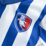 Striped shirt with soccer emblem, shorts and soccer ball included