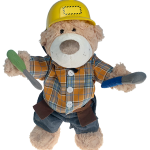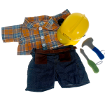 This outfit includes the shirt, pants, tool belt with 2 tools, and molded construction helmet with a space to add your workers name! Bear not included!