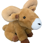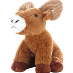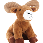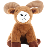 Roger has cool textured curly horns is super soft and huggable, and is a great school mascot. Roger has plastic eyes.