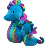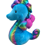 Introducing Shimmer the Seahorse! This dazzling beauty shines bright with glittery rainbow accents, sparking joy & adding a splash of magic to playtime!