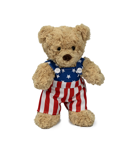 Star spangled clothing with a red, white and blue patriotic theme. This fits is for most 8″ plush animals, not included.
